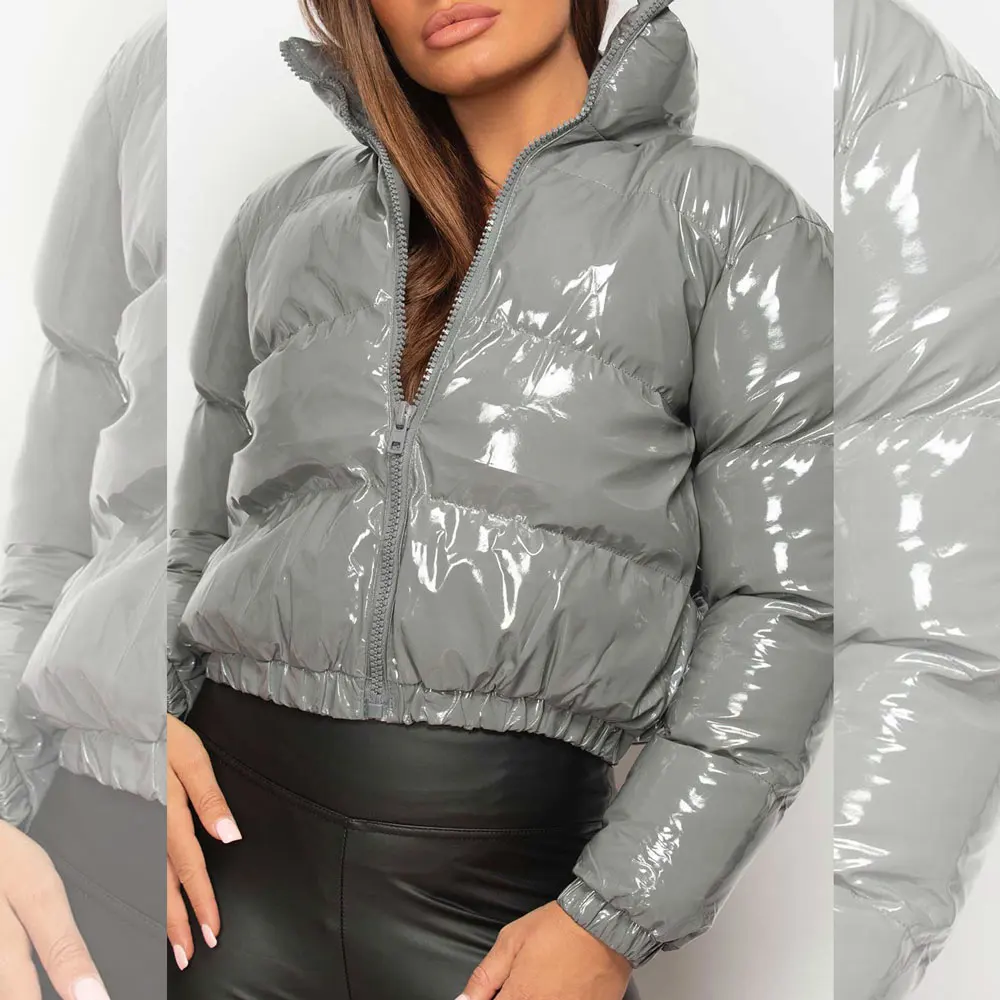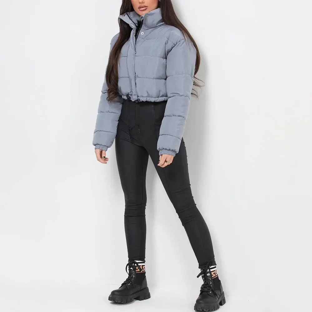 New Fashion Y2K Cargo Cropped Bomber Jacket Women Winter Streetwear Cotton Plain Blank logo Printed Custom Shiny Puffer Jacket